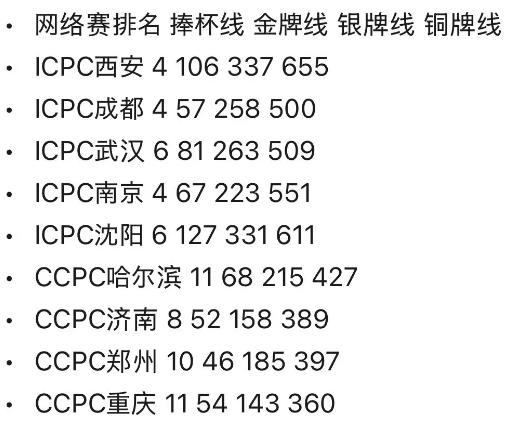 但是,这一场真是诸神之战,正式队伍全是天才队,基本上金牌要快的 7 题,我们即使再做两题也没有希望,上面真的高手如云,我们最后在银靠后的位置,属于是成功守银了,但说实话确实没法冲金。除了正式队伍,榜单前面还有一大坨天才打星队,导致比赛中期完全没有办法跟榜,题目也很难,想不出来就是想不出来。