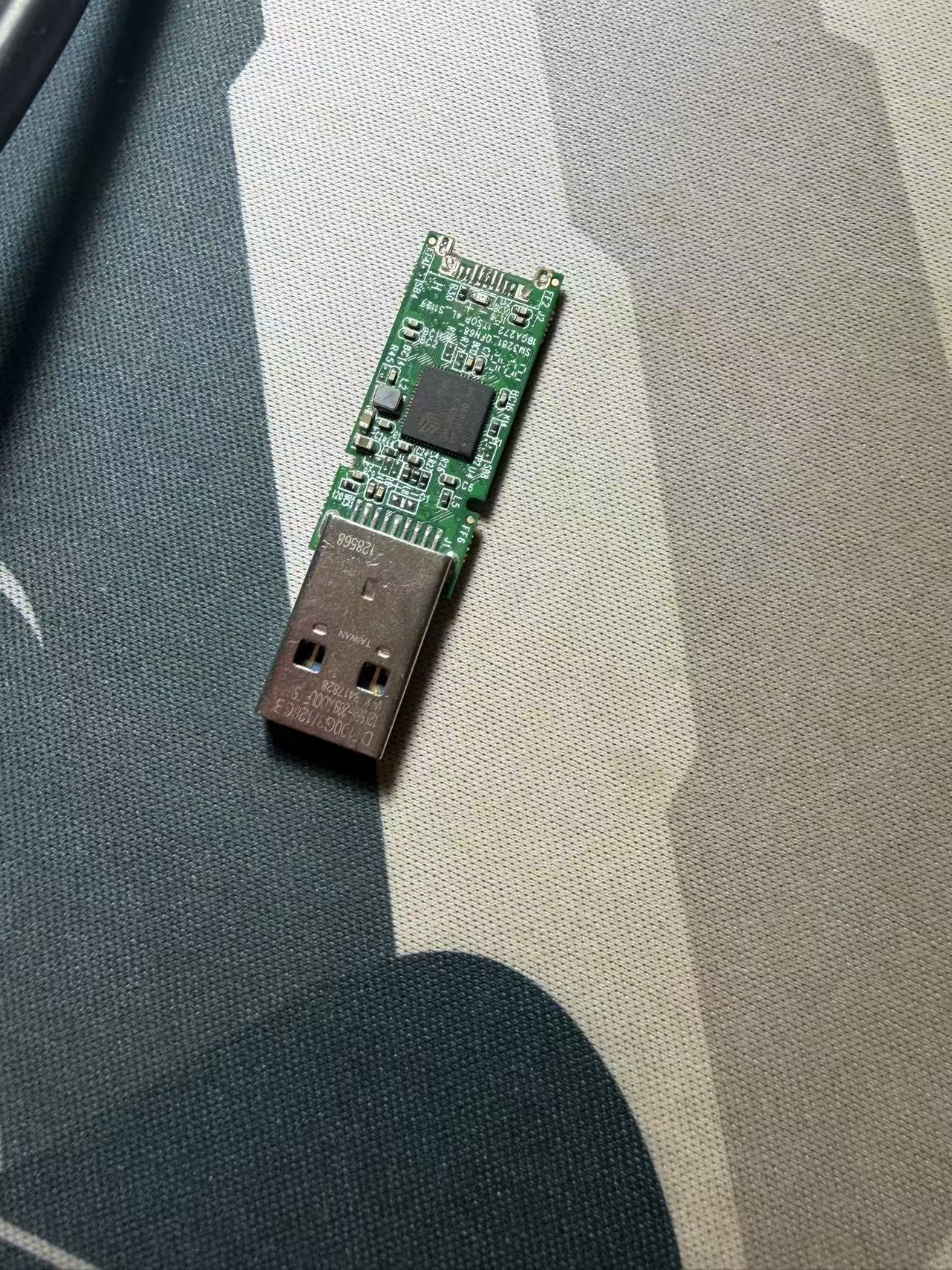 然后另一个神秘老哥说他宿舍有一个貌似能用的 U 盘,我说行,拿来试试吧。然后拿到手之后真没绷住(下右图),很符合这位老哥的气质。你说这 U 盘它虽然没有壳,但还是挺好用的,接下来几天我都有在用,而且居然有 128 GB,就是每次拔插手都有点疼,还能直接感受到 U 盘的体温。