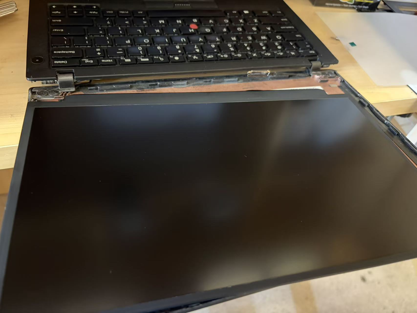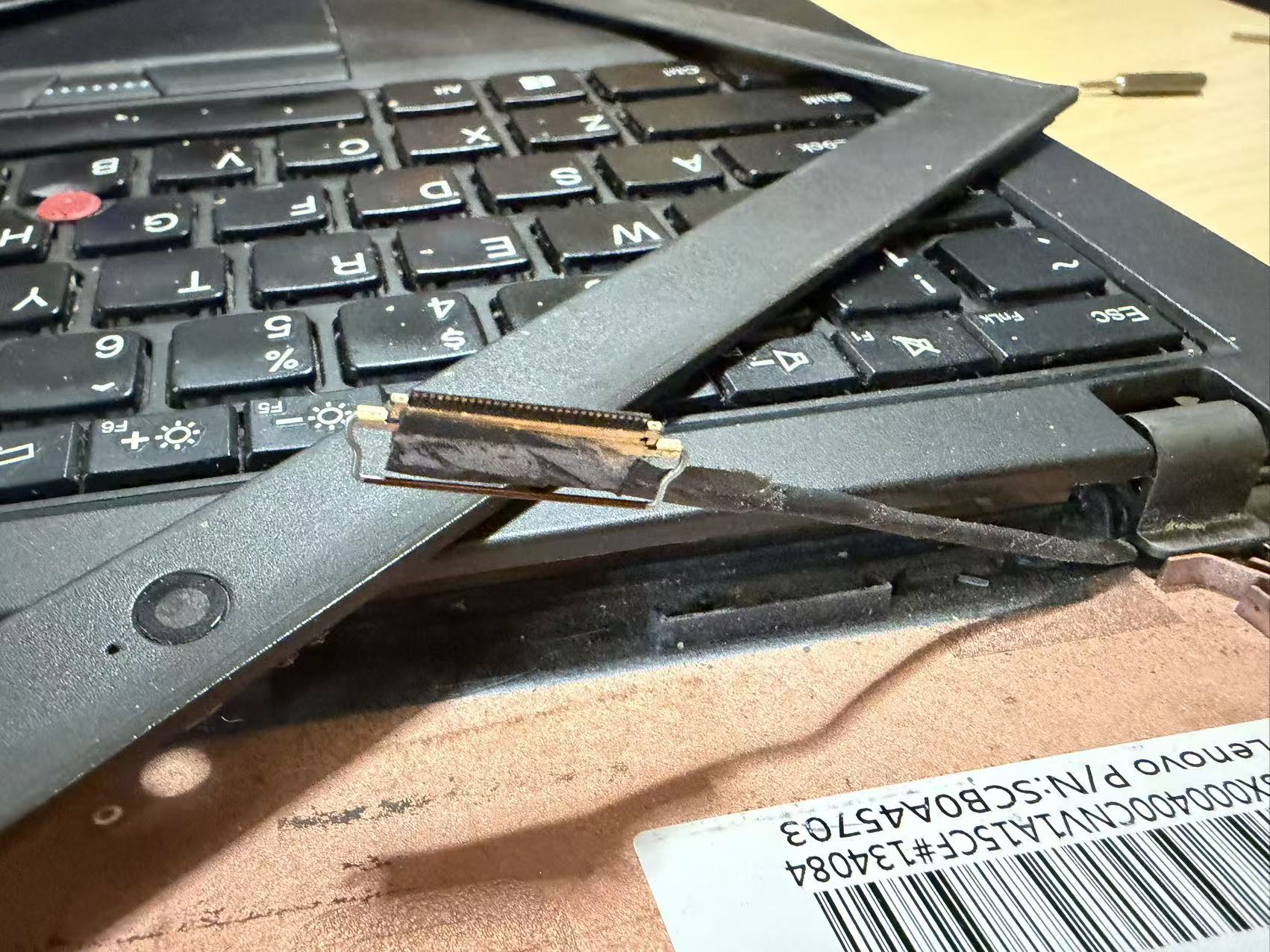 比较麻烦的是这个屏幕,其实步骤也很简单,但中间很容易操作失误。看了下换屏幕教程视频,就是直接把这个屏幕旁边的那一圈壳扣下来,注意用工具简单翘一下卡扣,然后里面的屏幕就可以分离开来了(下面左图所示)。其实这个时候我才注意到,原来连接屏幕,传送这么多图形信号的线,也不过就一个非常小的口,不仅线很细,里面的针管更是很小,查了下这个东西好像叫 eDP 接口(下面右上图所示)。这么小一个东西居然能传输 1080P 60Hz 的信号😰