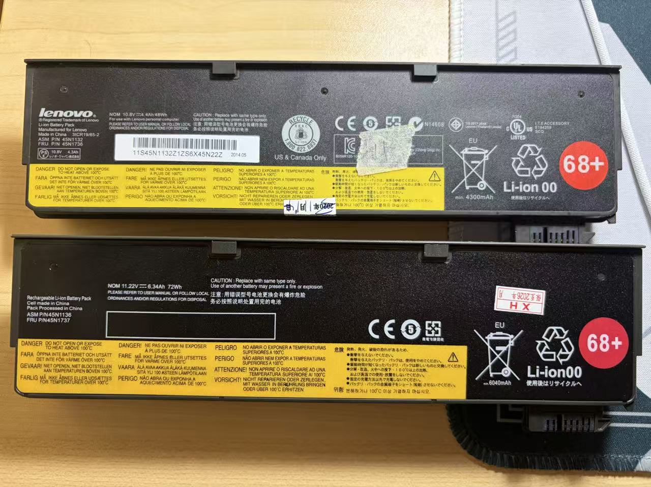 上面这个是原装 48Wh 电池,能看到有 lenovo 联想的标志和序列号什么的。