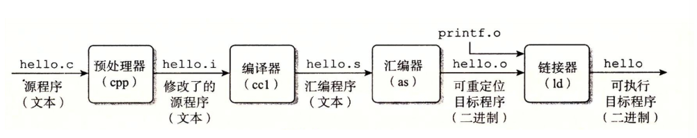 这个程序是从源文件开始的,比如文件名叫做 hello.c,用 ASCII 标准来表示文本字符存在系统里。
