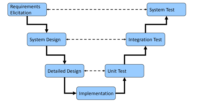 从图中可以看到,从产品需求开始到最实现,都是可以返回来测试的。