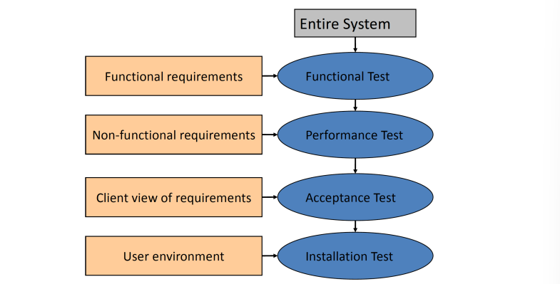 目标:测试多个子系统之间的交互,确保合并起来的整个系统满足需求。