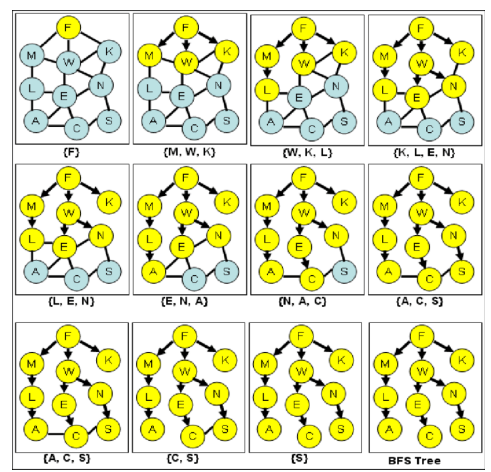 Breath-First Search (BFS) is searching neighbors around each node. And we usually use queue to implement.