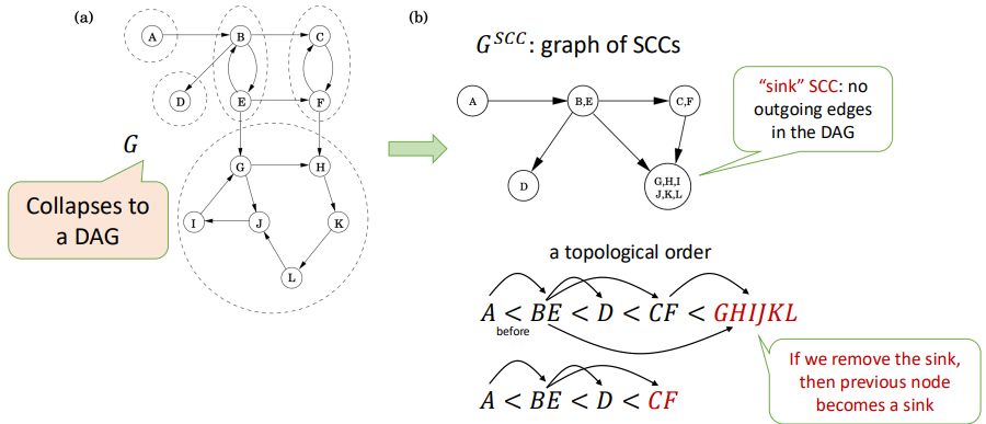 Key Observation: If you collapse each SCC into a single node, the resulting graph is a DAG. This DAG has a topological order.