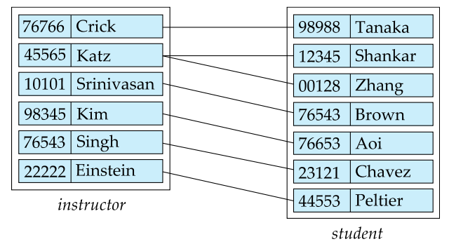 在关系模型中通常还涉及 Foreign Key:若关系 (R) 中属性集合 (F) 的值必须出现在另一关系 (S) 的 Primary Key 中,则称 (F) 为引用 (S) 的 Foreign Key。