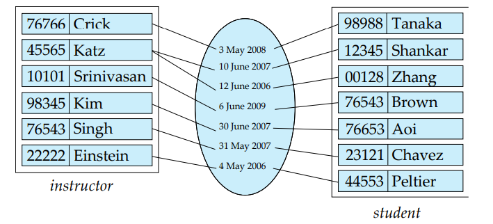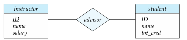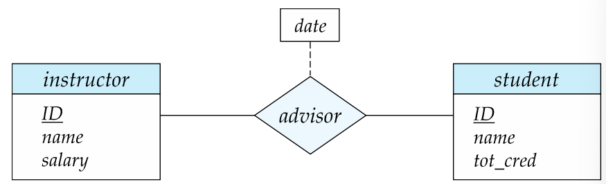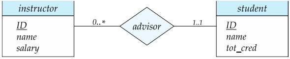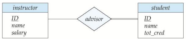 student 在 advisor 关系集中的参与是全部的,即每个学生都至少有一位导师。instructor 在 advisor 关系集中的参与是部分的,即一位导师不是必须要指导学生。